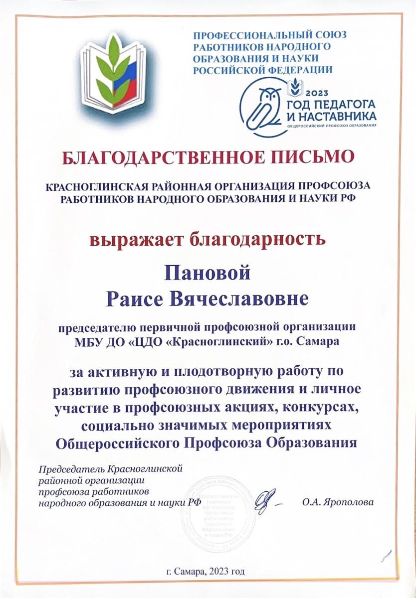 Добро пожаловать на страничку первичной Профсоюзной организации МБУ ДО «ЦДО «Красноглинский» г.о. Самара